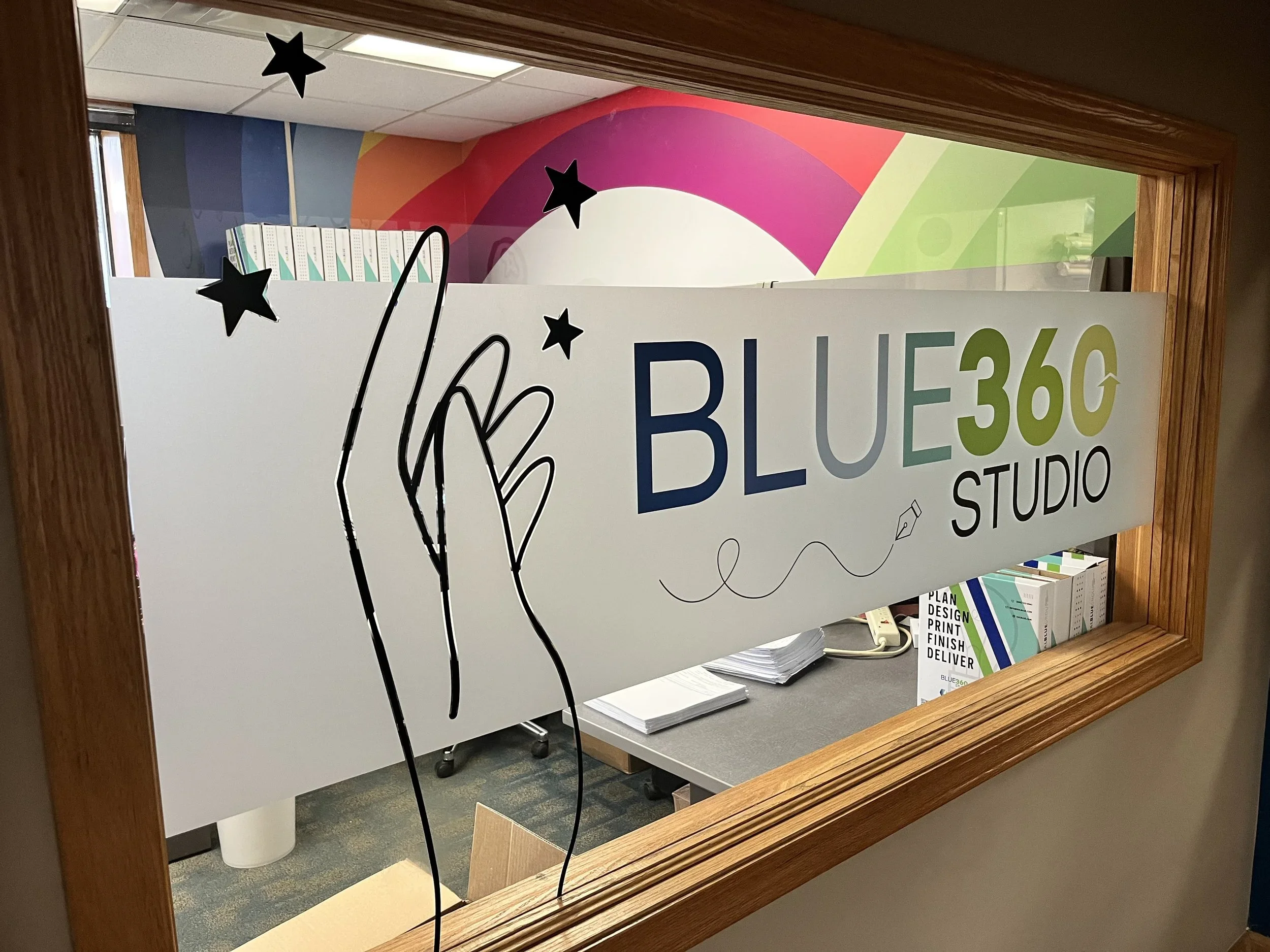 CLIENT: kalblue group | project: blue360 office | deliverables: designed window decals | date: 2022 | programs: adobe illustrator