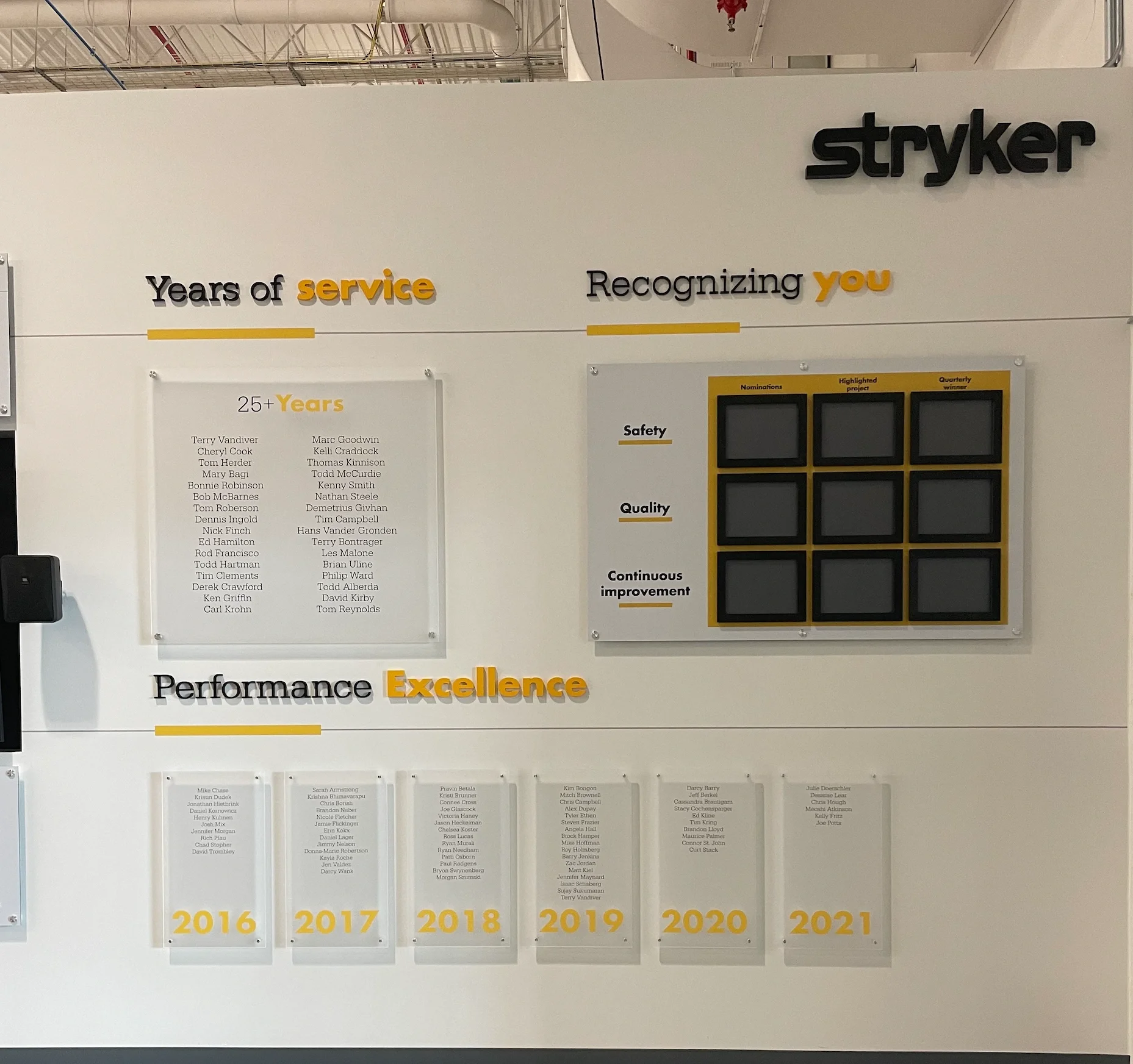 CLIENT: stryker | project: recognition wall | deliverables: designed acrylics | date: 2022 | programs: adobe illustrator
