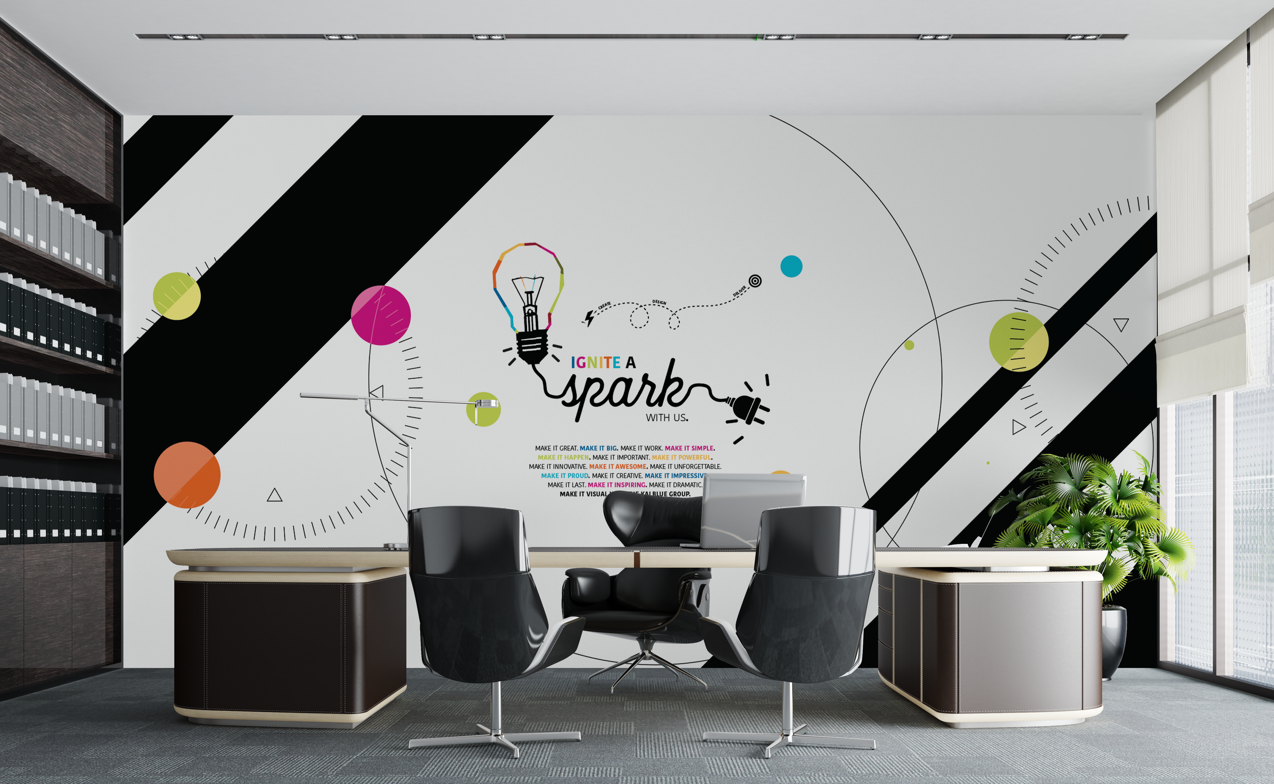 CLIENT: kalblue group | project: conference room design | deliverables: designed wall decals & acrylics | date: 2022 | programs: adobe illustrator